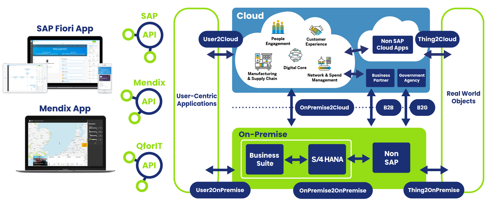 - On-premise, cloud (public/private) and hybrid applications (A2A)